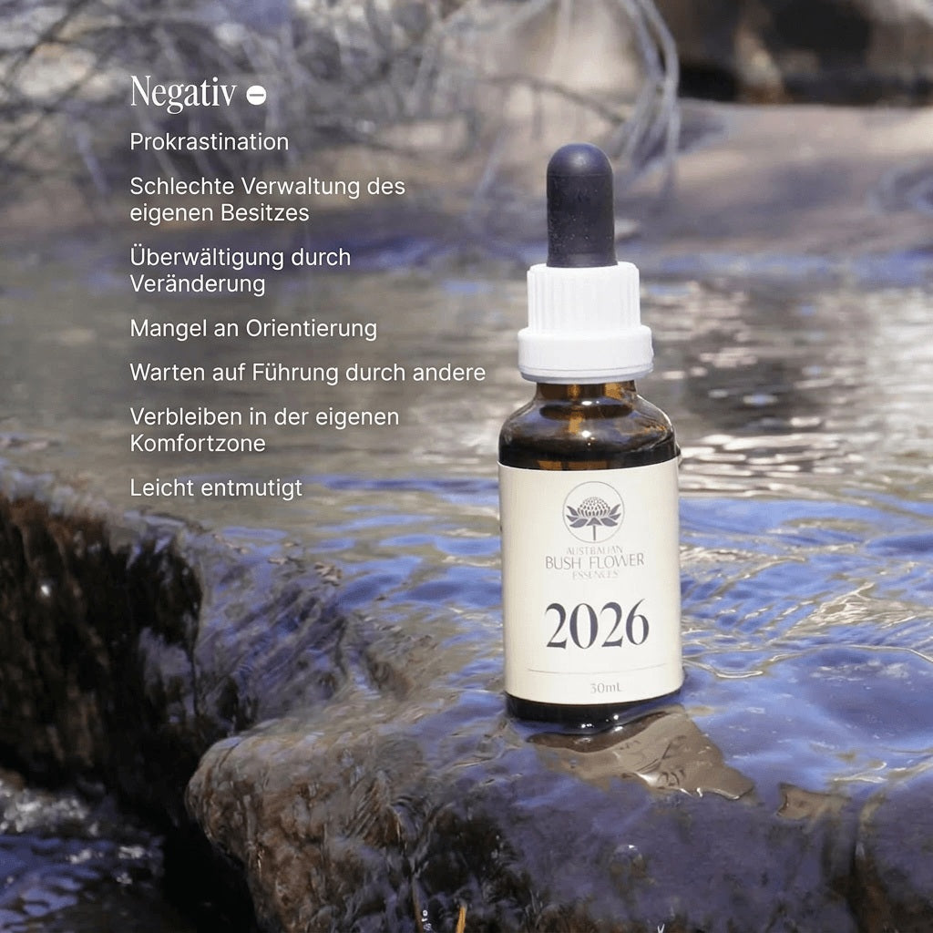 Die 2026 Essence wurde entwickelt, um den kraftvollen energetischen Wandel zu unterstützen und entschlossenes Handeln zu fördern. Diese von Ian White sorgfältig zusammengestellte Mischung hilft dabei, Aufschieberitis aufzulösen, veraltete Gewohnheiten loszulassen und den Fokus auf einen verantwortungsvollen Umgang mit den eigenen Ressourcen zu erneuern. Sie stärkt die Fähigkeit, mit Klarheit, Widerstandskraft und Zielstrebigkeit voranzuschreiten.